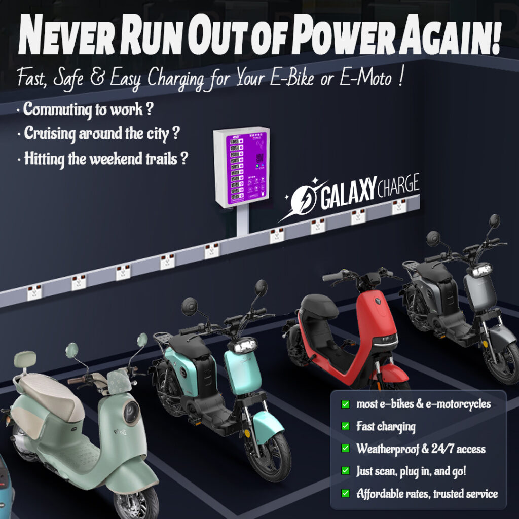 The charging market for E – Bikes and E – Motos has broad prospects, and GALAXY CHARGE is fully prepared to inject professionalism and vitality into this market. We sincerely invite enterprises, investors, entrepreneurs, and relevant institutions from all over to join us. Let’s contribute to green travel and achieve mutual benefits in this promising field. Let’s work hand in hand to open a new chapter in E – Bike and E – Moto charging and move towards a better future together. If you are interested in our project, please feel free to contact us at any time to learn more about cooperation details. In the call of “Seize the opportunity and create the future together,” don’t miss the chance to write a glorious chapter with GALAXY CHARGE.